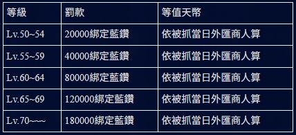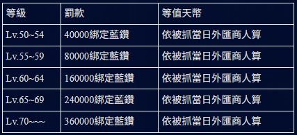 罰款10萬藍鑽等值天幣 + 每日簽到罰款等值天幣(如下表) + 永久取消簽到 才能解鎖