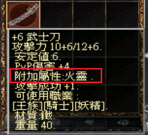 屬性武器一共有四種屬性、三個階段